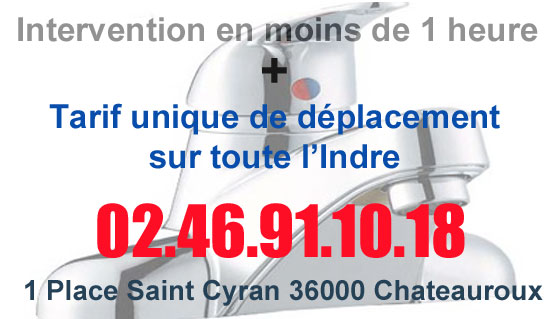 Quelque soit votre lieu d'habitation dans l'Indre nous pouvons intervenir en moins de 1 heure pour toutes urgences en plomberie.
